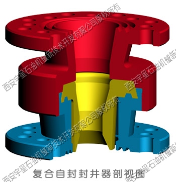 復(fù)合自封封井器以結(jié)構(gòu)合理、適用性強(qiáng)為特征。依據(jù)適用場合的不同,復(fù)合自封封井器主要分為FHZF150/250型和FHZF250/350型兩大類,F(xiàn)HZF150/250型可同時適用于150型和250型井口,F(xiàn)HZF250/350型可同時適用于250型和350型井口。密封膠芯均選用聚氨酯材料,耐磨、耐油,密封可靠,使用壽命長。