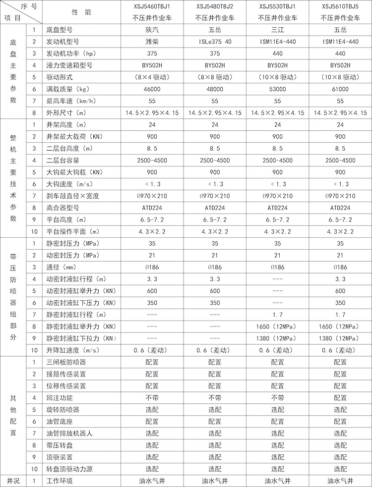 一體式不壓井作業(yè)車主要技術(shù)參數(shù)