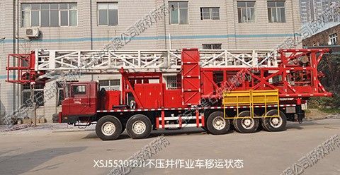一體式帶壓作業(yè)機(jī)配置有絞車、井架、二層平臺(tái)、油管立放盒、船型底座、游車大鉤(或頂驅(qū)懸掛裝置)、回注泵(可選配)、帶壓作業(yè)裝置,所有裝置有機(jī)結(jié)合到一起,移運(yùn)方便,就位快,施工效率高,是未來(lái)帶壓作業(yè)設(shè)備發(fā)展方向??蓭盒⌒?、大修,作業(yè)過(guò)程中不放噴,不外泄,也可壓力腔內(nèi)上卸扣,可不投堵施工;油管可直立于油管盒上,不需再放于地面;上卸扣、擺放油管可配套機(jī)械手執(zhí)行,提高了現(xiàn)場(chǎng)施工效率,減少了施工人數(shù)。防噴裝置部分采用了動(dòng)、靜結(jié)合帶壓作業(yè)方式,施工效率比單純的動(dòng)密封提高了三倍以上。
